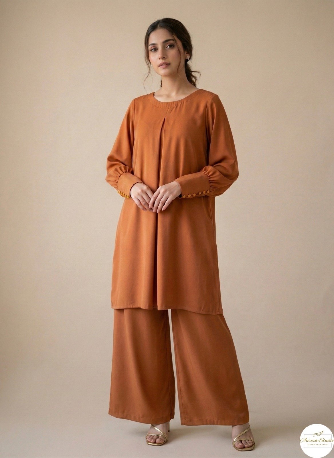 Be the first to review “Rust Karandi Solid Pret Co-ord Set”
