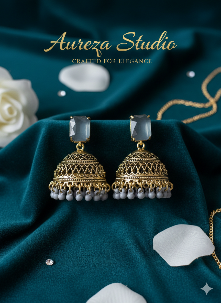 • Design: Traditional floral-motif stud with a bell-shaped (Jhumka) drop.
