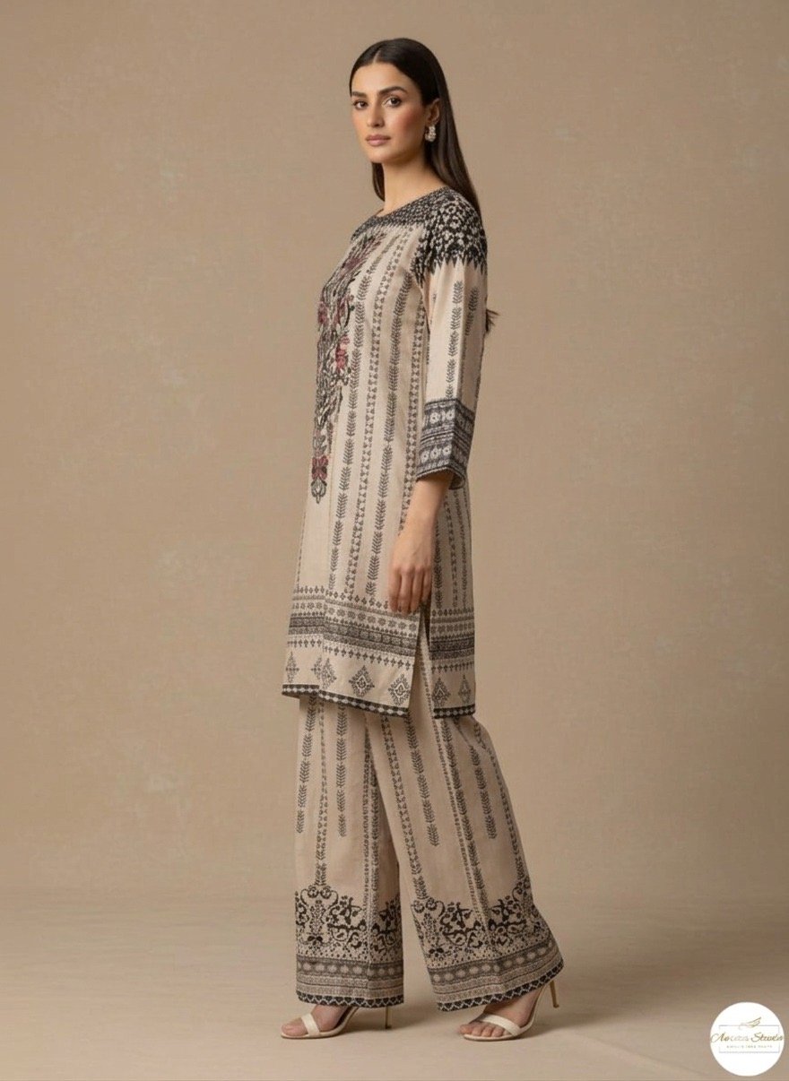 • Color: Baige base and black print with minimal mirror work on front neck